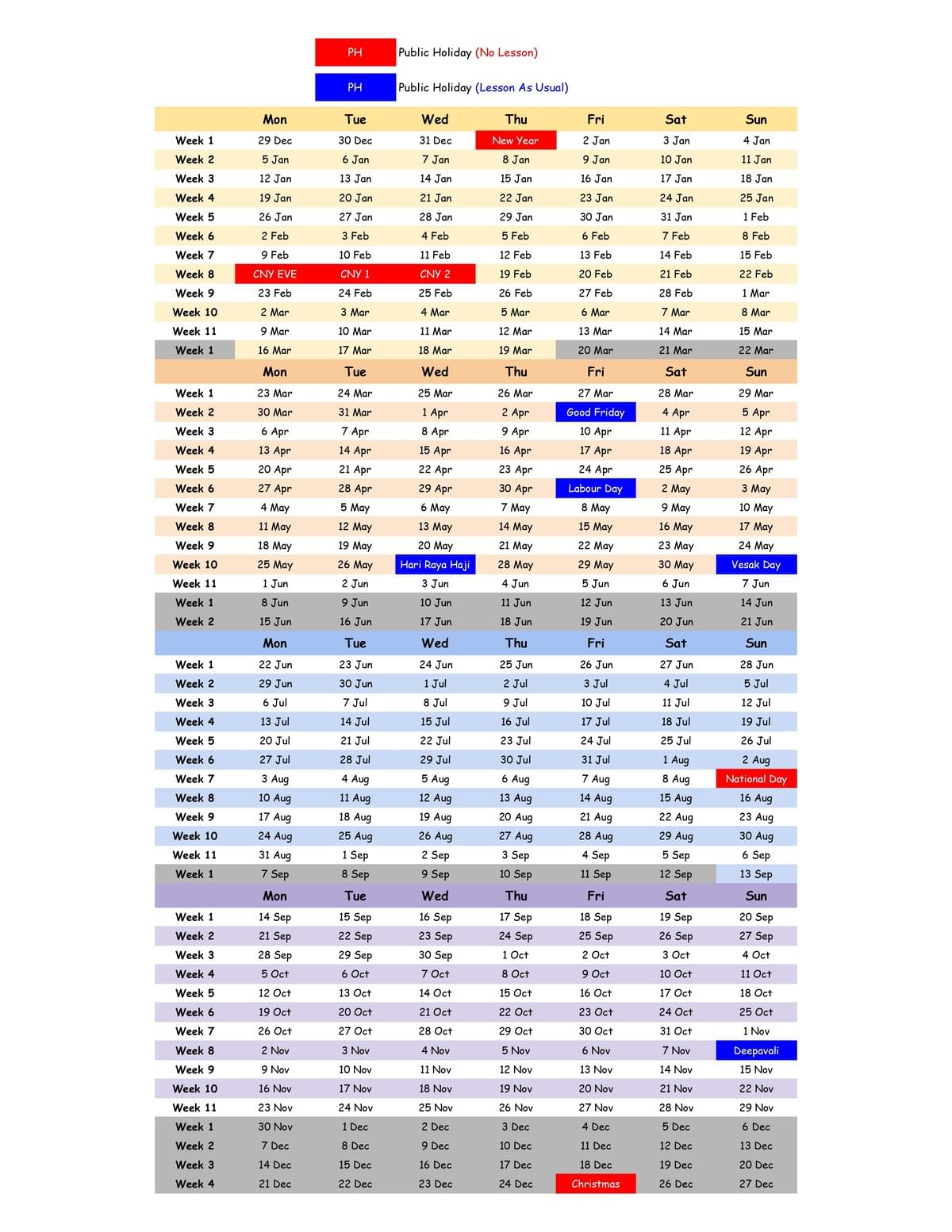 Here's the calendar for weekly classes of The Math Classroom in 2026.